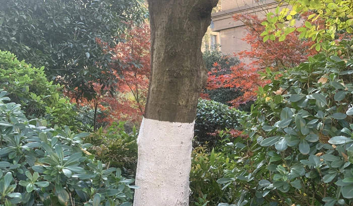 在滨江物业园林守艺人的指导下,小区绿化人集中力量为越冬耐寒性较差的树木用石硫合剂配方进行刷白,增强树木抗寒、防冻、防虫的能力,并且刷白边线整齐美观。这一动作已与杭州西湖边的园林树木同频,这几天,如果你在西湖边漫步,就会发现西湖边的梧桐等树木半身都被刷白了,刷白也是冬日里的一道白色美景。