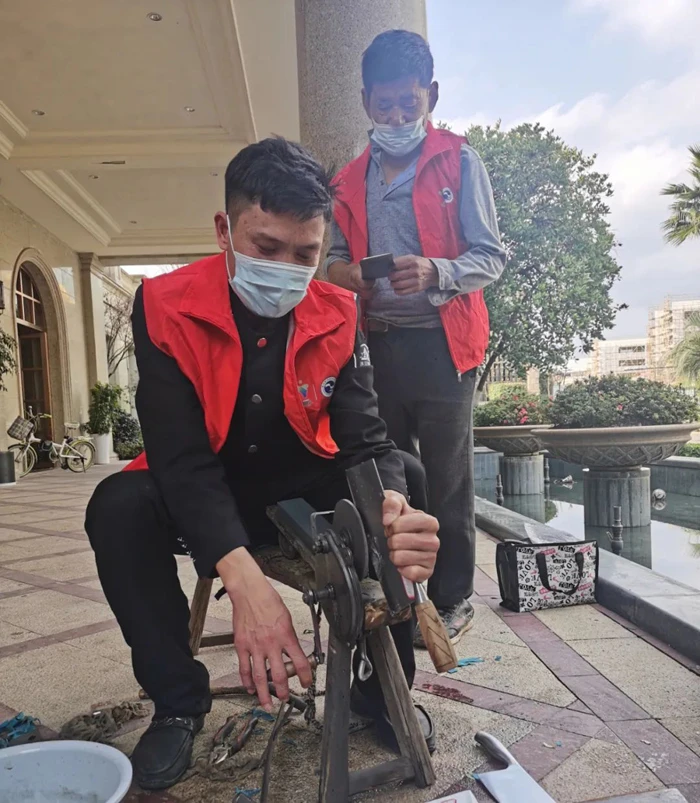 衢州月亮湾的秩序员、工程人员以雷锋为榜样,为业主磨刀,他们与专业师傅一起,认真为业主磨好了36把刀具,让它们重回厨房重要角色。衢州春江月,物业工程人员发挥自身特长,为业主修理小家电,受到业主欢迎。