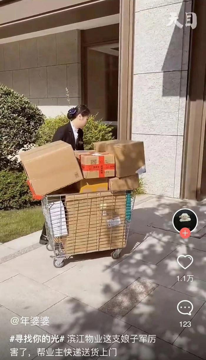 业主们的短视频,有记录今年春夏小区抗疫的众志成城,有秀出小区里天然的足球场,有把镜头对准小区建筑、园林美如画的风景线,有分享园区当季成熟的杨梅、枇杷,有传递社区活动的丰富多样,还追随物业人的脚步……他们都在寻找着那道光,是生活之光,是服务之光,更是希望之光。