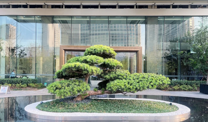 目送业主上班,守候业主回家,这是园区队员的职责,但是有一种树,也有这样的映射功能。在杭州中顺大厦门口有一株造型优美的罗汉松,项目主任说:“在业主心里,它就像一个守护者,等待着业主回家。”滨江物业进驻大厦以来,精心护理它已有两年了,今年夏天的高温下,更是重点守护。绿化师傅通过浇水、修剪和定期绑扎云片等专业技术,使罗汉松展现行云流水的美。