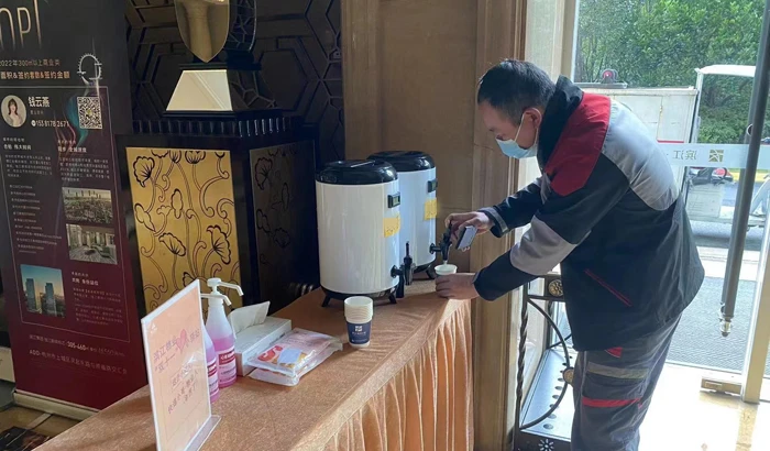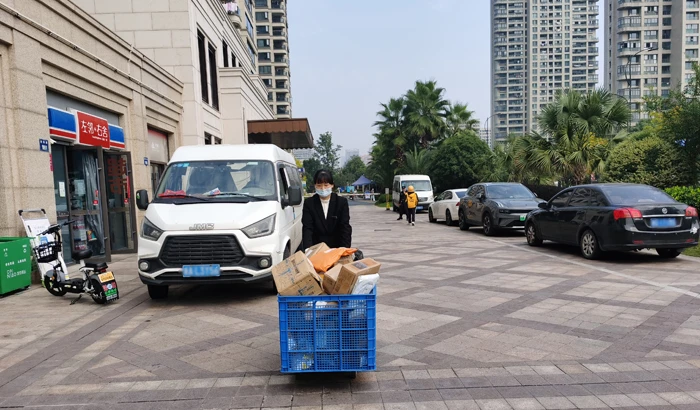 云荷廷竺轩小区门口设立的爱心小驿站,小哥进出都能看到,非常便捷,物业为小哥准备了清热的菊花茶饮,适合秋天干燥的季节,物业的爱心行动,还引起了小区业主发朋友圈点赞。物业负责人王小华说:“从11月3日起,管家已全员出动送货上门,队员也有两到三名支持,物业主要配送中大件快递,以腾出空间迎来晚上的一波快递。”