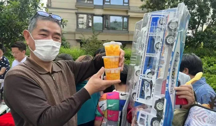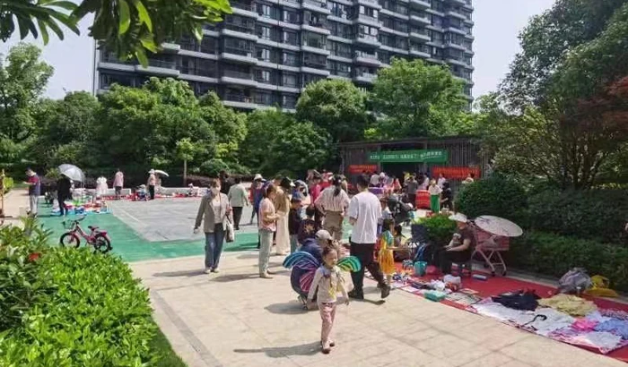 杭州光耀府有一位业主准备了套圈玩法,以有奖游戏的形式,将闲置物品以奖品形式无偿送给小区邻居,充分体现环保和分享的生活理念,赢得了邻居们的好评。衢州春江月有小朋友穿汉服出摊,吸引顾客光顾,有摊主卖书送DIY扇子,有的不断吆喝,现场的小老板们都有自己的生意经。