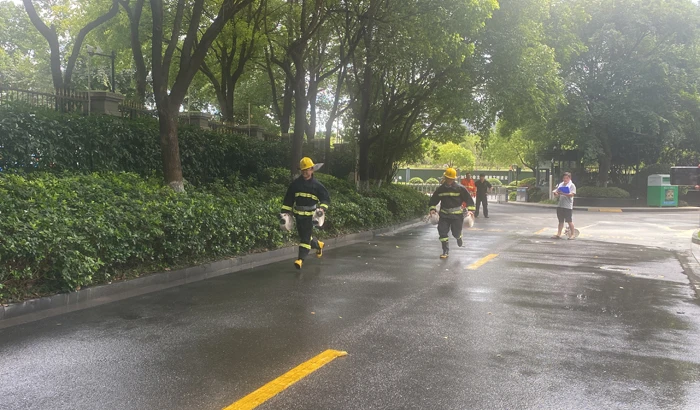 护航亚运,提升业主消防安全意识,杭州市上城区四季青街道运新社区联合滨江物业江南御府服务中心,在江南御府小区开展消防技能大比武。